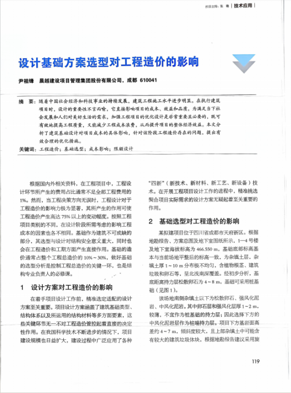 近日,晨越建管集团设计院尹祖锋编写的论文《设计基础方案选型对工程造价的影响》成功发表于《建筑》2025年第3期。该论文聚焦工程设计与造价管理的核心关联,通过理论分析与实践案例,揭示了设计选型对项目成本控制的关键作用,为行业提供了可落地的解决方案。
