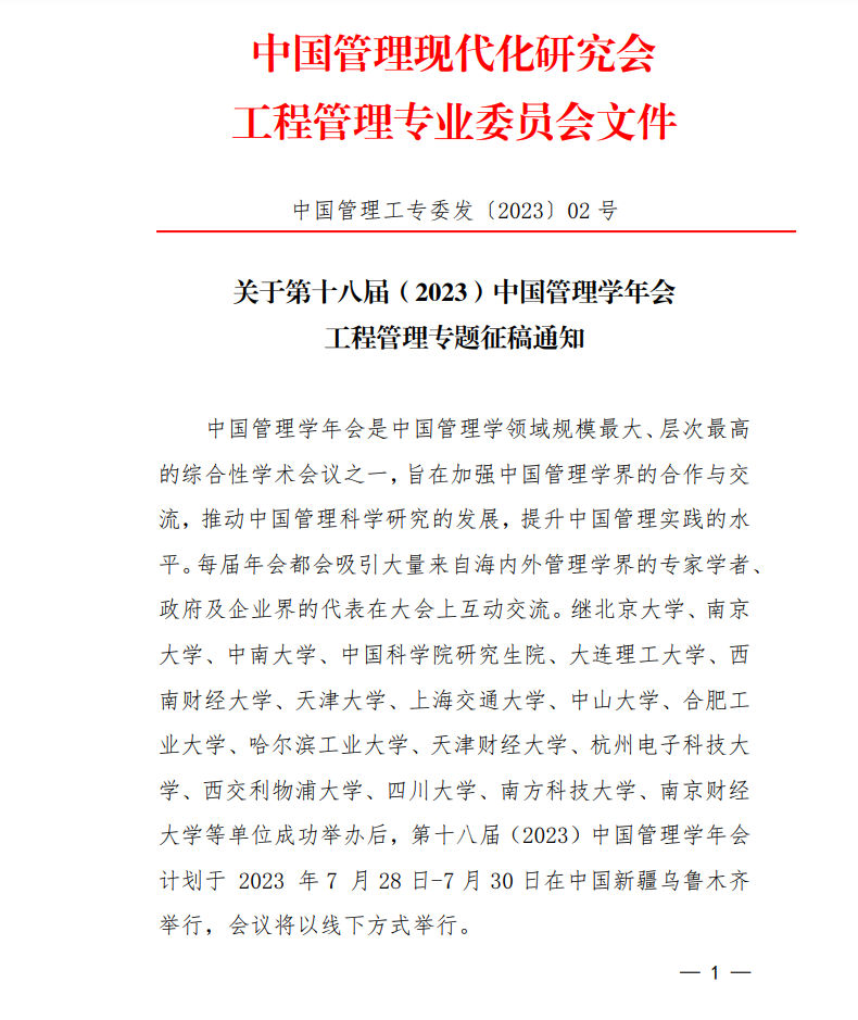中国管理现代化研究会 工程管理专业委员会文件